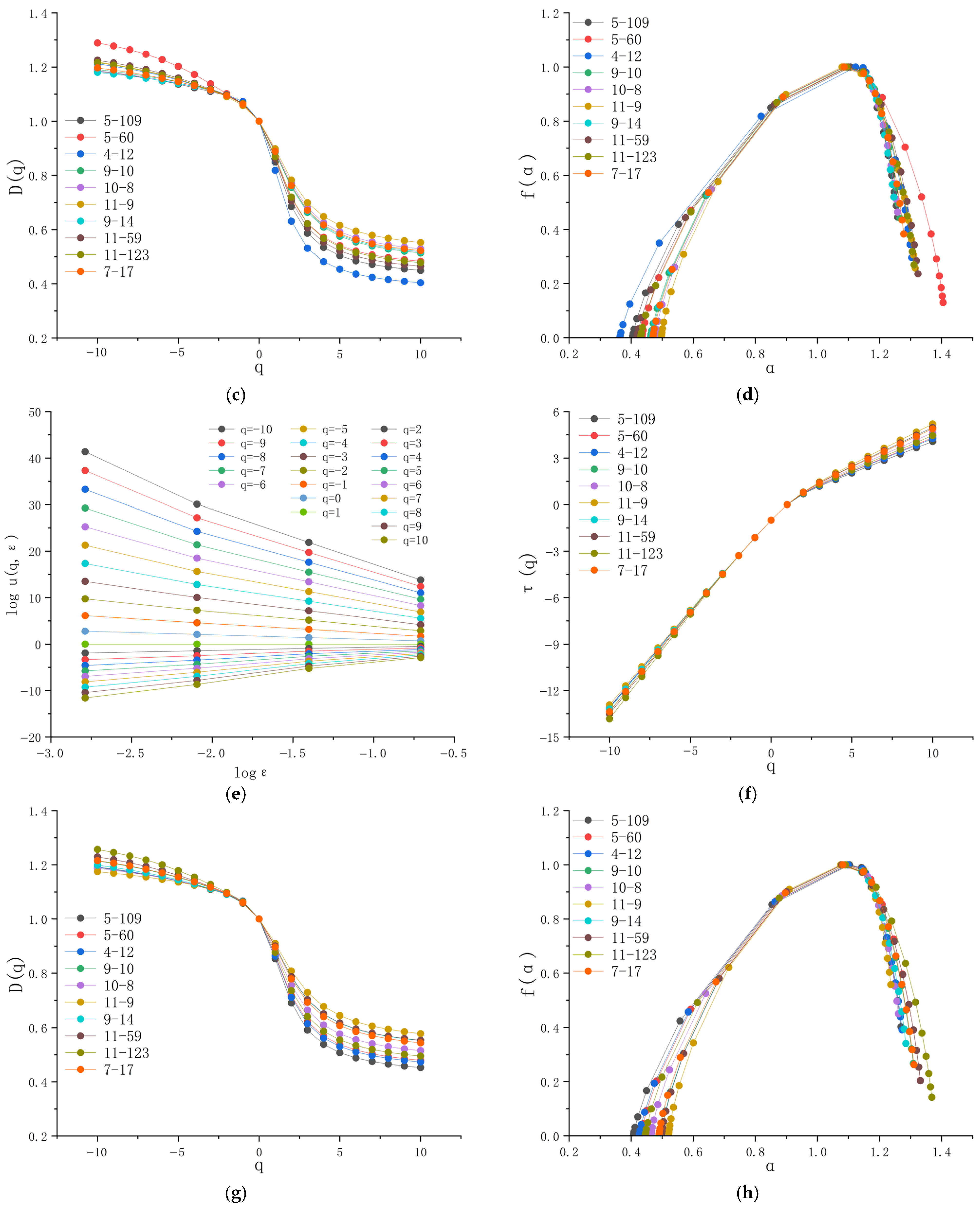 - Chhabra, A.; Jensen, R.V. Direct determination of the f(α) singularity spectrum. Phys. Rev. Lett. 1989, 62, 1327–1330. [Google Scholar] [CrossRef] [PubMed]
