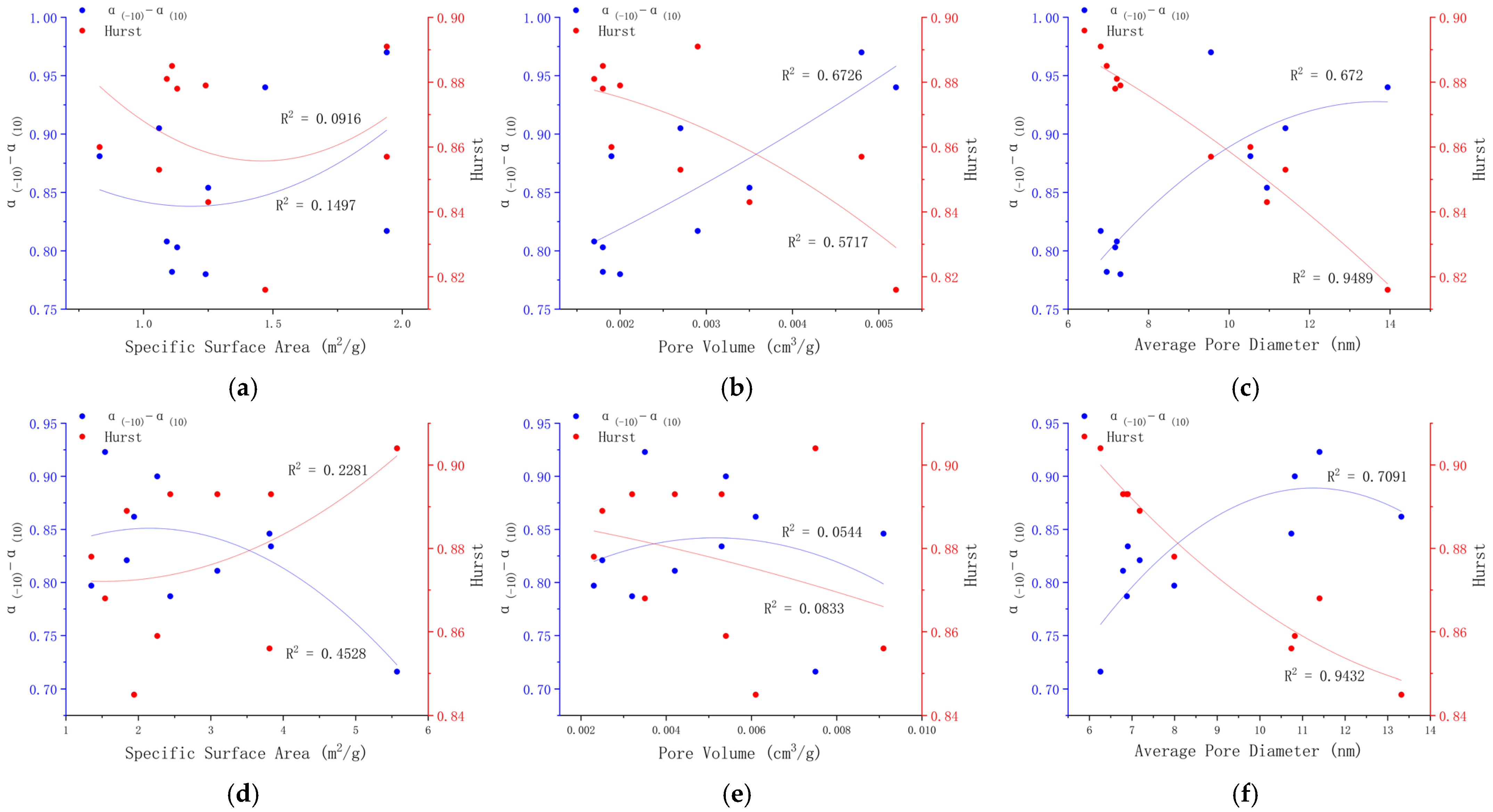 5.1. Relationship Between Fractal Dimensions and Pore Structure Parameters