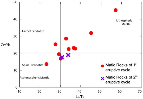 - Cabanis, B.; Lecolle, M. Le Diagramme La/10.-Y/15-Nb/8: Un Outil Pour La Discrimination de Series Volcaniques et La Mise En Evidence Des Processus de Melange et/Ou de Contamintion Crustale. Comptes Rendus l’Académie Sci. Ser. 2 Mécanique Phys. Chim. Sci. l’Univers Sci. Terre 1989, 309, 20232029. [Google Scholar]