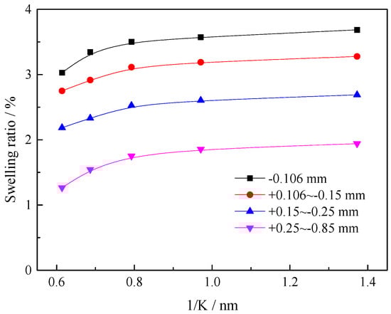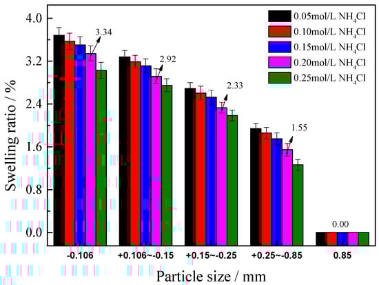 3.3.2. Swelling Ratios of Ore Samples with Different Grain Sizes of WCE-DREOs