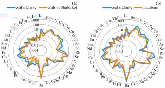 Figure 3). The average concentrations of most impurity elements in the Jurassic coals and mudstones from the Shubarkol deposit were lower than the average values for these elements in hard coal [