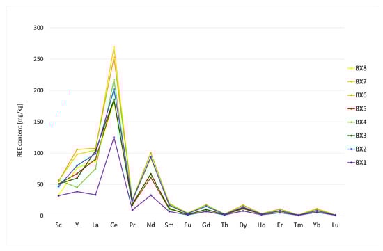 Median REE values (including Sc and Y) in the Croatian karst bauxite horizons (BX1–BX8).