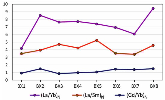 Median REE fractionation ratios for the Croatian karst bauxite horizons (BX1–BX8).