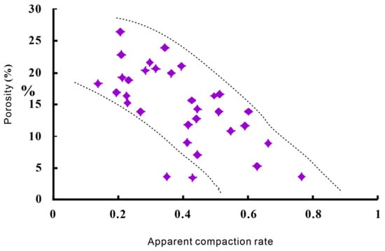 - Paxton, S.T.; Szabo, J.O.; Ajdukiewicz, J.M.; Klimentidis, R.E. Construction of an Intergranular Volume Compaction Curve for Evaluating and Predicting Compaction and Porosity Loss in Rigid-Grain Sandstone Reservoirs. Am. Assoc. Pet. Geol. Bull. 2002, 86, 2047–2067. [Google Scholar]