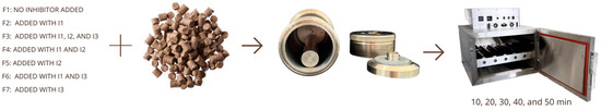 It is possible to see in Figure 4, Figure 5, Figure 6, Figure 7, Figure 8, Figure 9 and Figure 10 that the pellet accretion process was more evident after a period of 10 min, with the highest accretion percentages occurring between 20 and 50 min. The pellets used underwent a deformation process before aggregating and formed a more uniform layer, thus resulting in the accretion phenomenon.