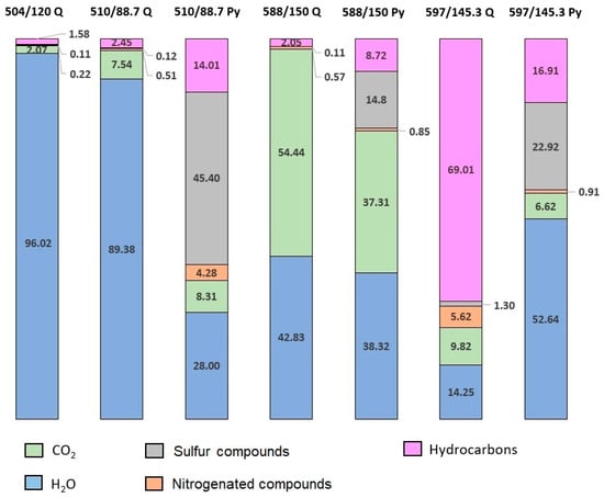 | Components | MW * | 504/120 Quartz | 510/88.7 Quartz | 510/88.7 Pyrite | 588/150 Quartz | 588/150 Pyrite | 597/145.3 Quartz | 597/145.3 Pyrite |