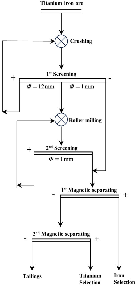 Pre-throwing tailings process for ilmenite based on 1 mm multi-stage screening.