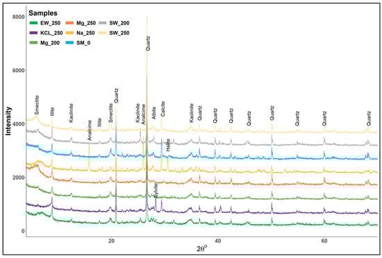 - Lanson, B.; Sakharov, B.; Claret, F.; Drits, V. Diagenetic Smectite-to-Illite Transition in Clay-Rich Sediments: A Reappraisal of X-Ray Diffraction Results Using the Multi-Specimen Method. Am. J. Sci. 2009, 309, 476–516. [Google Scholar] [CrossRef]