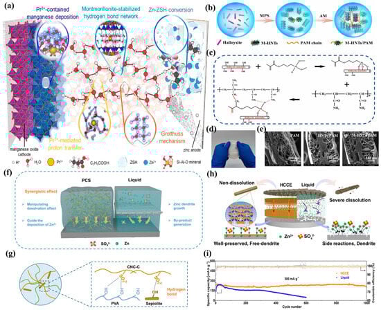 - Xu, P.; Wang, C.; Zhao, B.; Zhou, Y.; Cheng, H. A high-strength and ultra-stable halloysite nanotubes-crosslinked polyacrylamide hydrogel electrolyte for flexible zinc-ion batteries. J. Power Sources 2021, 506, 230196. [Google Scholar] [CrossRef]