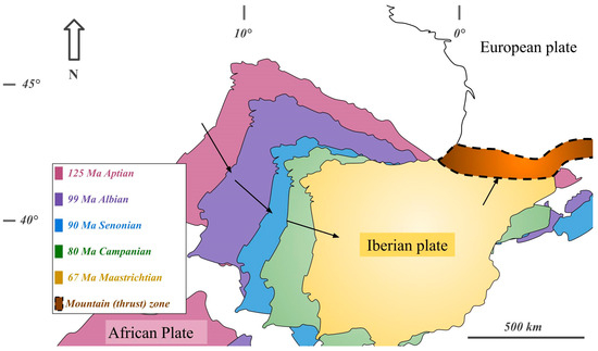 - Vissers, R.L.M.; Meijer, P.T. Iberian plate kinematics and Alpine collision in the Pyrenees. Earth-Sci. Rev. 2012, 114, 61–83. [Google Scholar] [CrossRef]