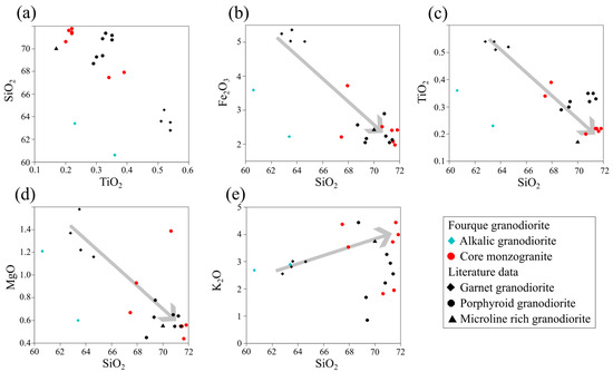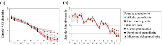 - Barbarin, B. A review of the relationships between granitoid types, their origins and their geodynamic environments. Lithos 1999, 46, 605–626. [Google Scholar] [CrossRef]