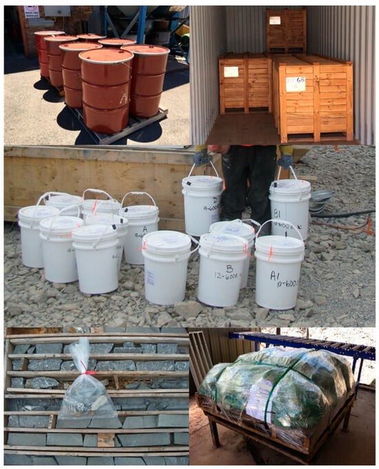 The terms “metallurgical sample” and “geometallurgical sample” are often used interchangeably, which can lead to confusion. A metallurgical sample is one that is collected for a testwork programme which will be based upon standard bench-scale (so-called “bankable”) high-cost recovery and comminution tests (e.g., gravity recoverable gold [GRG], leaching, flotation, Bond Work Index [BWI], Bond Abrasion Index [BAI], etc. [14,16,18,28,30,31]. The sample will be either a composite or variability sample, but often a composite sample. Composites may focus on defined domains (e.g., initial geological or geometallurgical) or across production periods (e.g., within given pit benches or underground stopes).