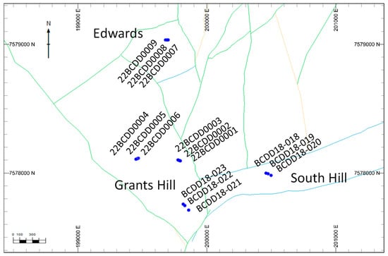 Individual variability sample masses ranged between 17.5 kg and 27.2 kg (Table 7), with final variability composite masses ranging between 55 kg and 71 kg (Table 8). In total, the 2018 and 2022 geometallurgical drilling programmes provided 15 holes and approximately 47.9 m of equivalent continuous mineralization, yielding a total mass of 718 kg (Figure 6). The Grant’s Hill area is key to the future project, with the holes covering the important M1 and M2 reefs within the 2024 pit shells.