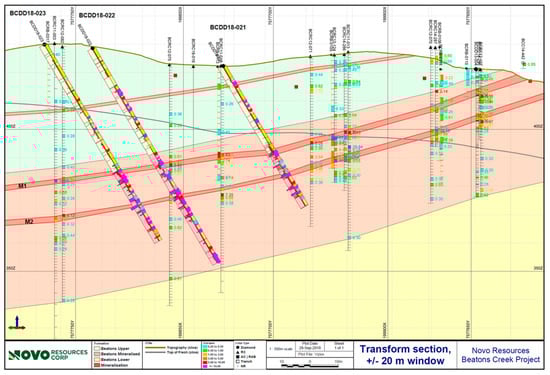 - Novo. Mineral Resource Update: Beatons Creek Gold Project, Nullagine, Western Australia; NI 43-101 Technical Report; Novo Resources Corp.: Vancouver, BC, Canada, 2022; p. 210. Available online: https://www.sedarplus.ca/csa-party/records/profile.html?id=e282f6bdbe8f2e0d9570718b0e194f4c (accessed on 24 March 2025).