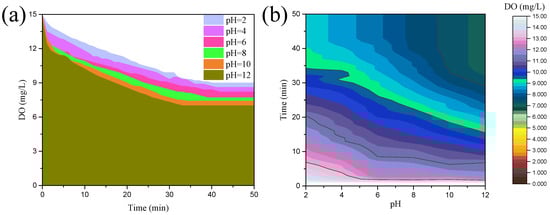 Oxygen consumption behavior of chalcopyrite under different pH conditions: (a) line symbol, (b) contour map.