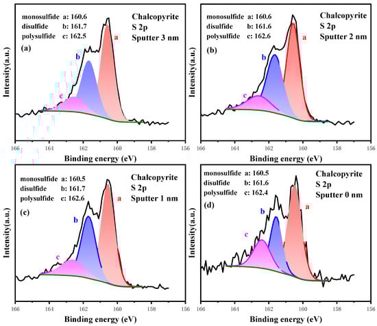 High-resolution spectrum analysis of S 2p on the surface of chalcopyrite under different etching depths.