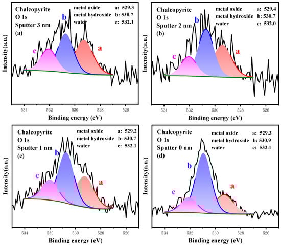 High-resolution spectrum analysis of O 1s on the surface of chalcopyrite under different etching depths.