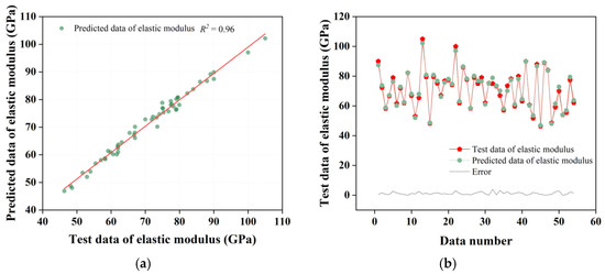 Machine learning is an effective tool for predicting the mechanical properties of basalt-reinforced materials and reinforced concrete. Wei et al. utilized an Artificial Neural Network (ANN) model to predict the alkali resistance of basalt fibers. The input variables for the model included the content of Si, Al, Fe, Ca, Mg, K, Na, Ti, and Zr in both basalt and glass fibers, with the output variable being the tensile strength retention rate. The optimized ANN model achieved an R2 value of 0.92 on the test set [19]. Sun et al. developed three different eXtreme Gradient Boosting (XGBoost) models to predict the split tensile strength of basalt fiber-reinforced coral aggregate concrete. The ESOA-XGBoost (egret swarm optimization XGBR) performed best, with an R2 of 0.9633 [20]. Alarfaj et al. compared the performance of five machine learning models in predicting the splitting tensile strength of fiber-reinforced recycled aggregate concrete, and the deep neural network showed the best performance, with the highest R2 value of 0.94 [21]. A review study by Machello et al. found that various machine learning algorithms can generally predict the mechanical properties of fiber-reinforced polymer (FRP) composites accurately with minimal error. It also pointed out that more experimental data are needed in future studies to enhance the current database and improve the performance of these machine learning models [22]. It is clear that machine learning can be used to reveal the relationship between the chemical composition of basalts and their elastic modulus.