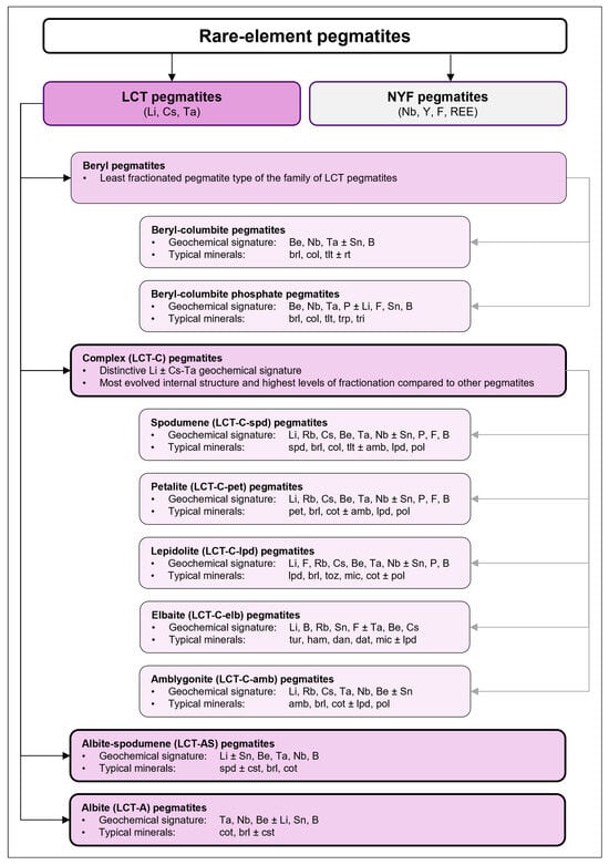 58. Černý, P.; London, D.; Novák, M. Granitic pegmatites as reflections of their sources. Elements 2012, 8, 289–294. [Google Scholar] [CrossRef]