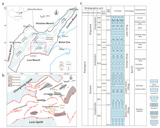 - Wang, Y.; Zhao, X.; Gao, B. Characteristics of Structural Evolution in Jiyang Depression. J. Chengdu Univ. Technol. 2002, 29, 181–187. [Google Scholar]