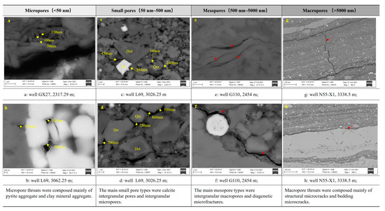 - Lu, S.; Li, J.; Zhang, P.; Xue, H.; Wang, G.; Zhang, J.; Liu, H.; Li, Z. Classification of microscopic pore-throats and the grading evaluation on shale oil reservoirs. Pet. Explor. Dev. 2018, 45, 436–444. [Google Scholar] [CrossRef]
