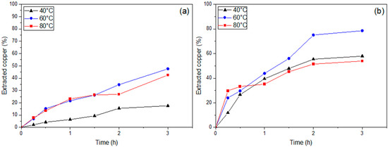 Results of copper extraction using H2O2/EDTA at 40 °C, 60 °C and 80 °C.