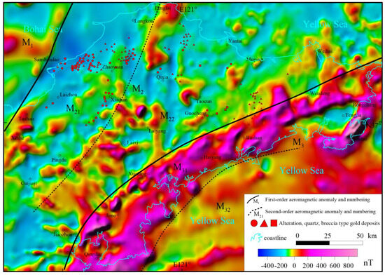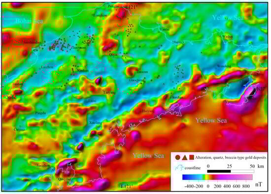 Figure 5. Aeromagnetic anomaly map of the Jiaodong region.