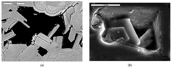 The SEM back-scattered images showing the microstructure of clinoptilolite tabular crystals, in zeolite-rich rock samples are shown in Figure 4.