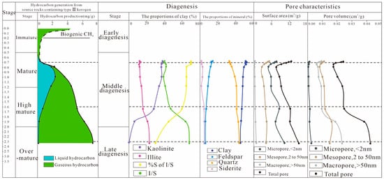 Diagenetic evolution sequence of major minerals in shales of the Wufeng Formation–Long1-1 Sub-member, Neijiang–Rongchang Block [53,66].