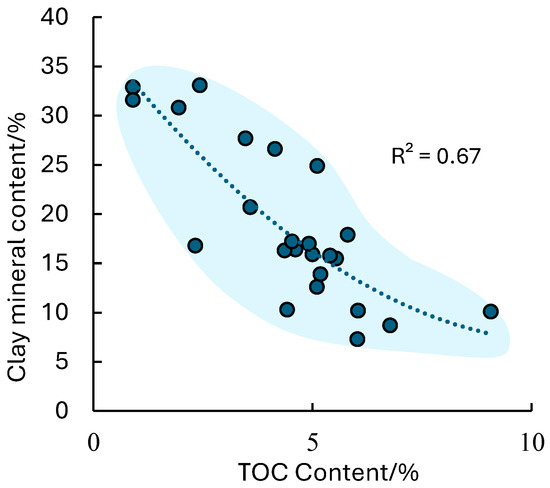 Relationship between clay minerals and organic carbon content in shale.