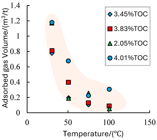 Relationship between adsorbed gas volume and temperature (Adapted from Jiang, 2018) [48].