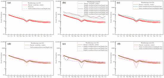 Previous studies have shown that strong fractional crystallization favors the crystallization of REE-bearing minerals such as zircon, sphene, apatite, monazite, and xenotime, which are easily decomposed and adsorbed during later weathering processes, thus providing a material basis for the enrichment of rare-earth elements [72,73,74]. Studies have further pointed out that the fractionation and leaching of rare-earth elements in the parent rock must have a high degree of magma evolution [75,76,77]. The granite in this study underwent fractional crystallization (Figure 7, Figure 8 and Figure 14). Therefore, strong fractional crystallization of parent rocks may be favorable for the formation of regolith-hosted REE deposits.