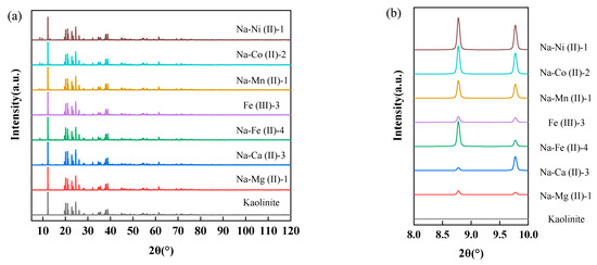 - Chen, J.; Sun, Y.; Ling, Y.; Chu, X.; Cheng, Y.; Min, F. Effects of Mg(II) Doping Amount on the Hydration Characteristics of Kaolinite Surface: Molecular Dynamics Simulations and Experiments. Surf. Interfaces 2024, 45, 103869. [Google Scholar] [CrossRef]