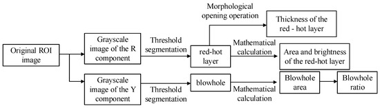 After opening the cross-section image, the burr can be removed effectively, and the calculated thickness of the red flame layer is closer to the actual value. To sum up, the feature extraction process of the best cross-section image is shown in Figure 10. Four image feature parameters are obtained through digital image processing technology.