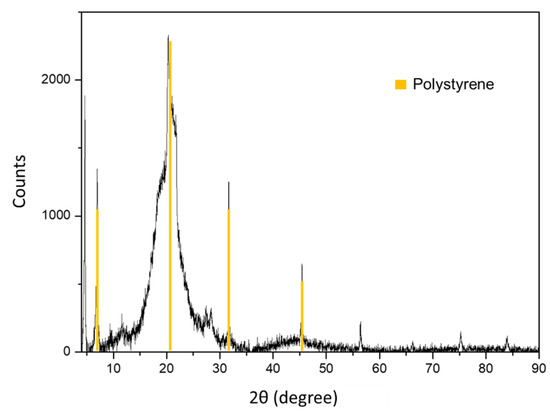 X-ray diffraction pattern for the polystyrene nanoparticles obtained via microemulsion polymerization.