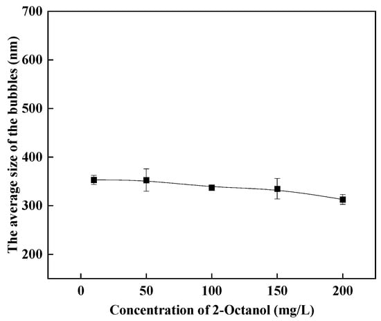 Figure 6. The effect of the concentration of 2-octanol on the average size of micro–nanobubbles.
