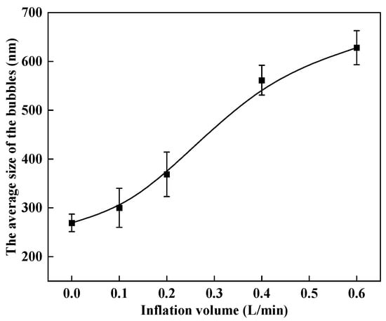 Figure 10. The variation in the average size of micro–nanobubbles with external inflation volume.
