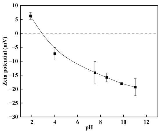 Figure 15. The variation in zeta potential of micro–nanobubbles with pH value.