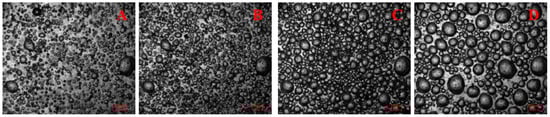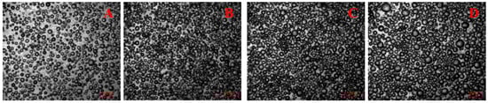 Figure 28. Micro–nanobubble PBM dynamic monitoring image in a 2-octanol environment (A) 0 s after the observation begins (B) 2 s after the observation begins (C) 4 s after the observation begins (D) 6 s after the observation begins.
