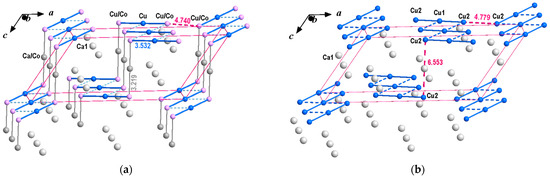 The determined structure was characterized as having some statistical disorder. Our refinement showed that there are two mixed-occupied positions, with Cu/Co (M1) and Ca/Co (M2) atoms. No experimental indication of superstructure reflections has been observed; consequently, we consider the Co atoms as being statistically distributed in M1 and M2 sites together with Cu and Ca atoms.