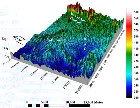 Digital elevation model (DEM) points of Wadi Sibrit–Wadi Urf Abu Hamam district.