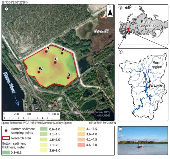 Therefore, the objective of this study is to determine the chemical and mineral composition features of sediment layers in this anthropogenic settling pond. It is hypothesized that layer-by-layer analysis of the technogenic deposits may reconstruct the sediment formation history, depositional conditions, temporal variations in wastewater composition, and other factors influencing sediment formation. Furthermore, the accurate identification of the sediment composition will provide crucial insights for developing effective remediation strategies.