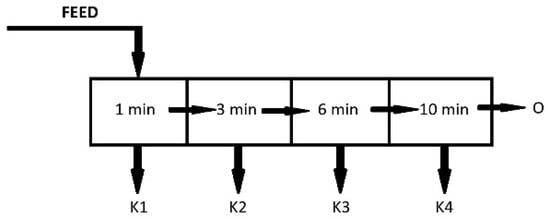 Fractional flotation tests of copper shale were performed in the presence of NaCl and α-terpineol and also without any reagents. The flotation duration was 20 min, and four successive concentrates (K) were used. The tailings (O) were the remaining materials after flotation (Figure 2).