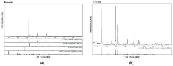 Mineral content detection results of XRD. (a) Dolomite; (b) Gypsum.