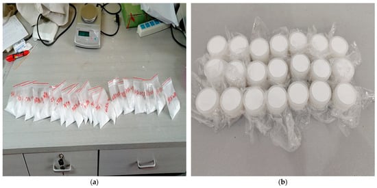 Photos of mixed mineral samples. (a) Initial sample; (b) Packaged sample.