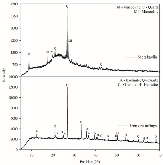 Mineralogical composition of metakaolin and iron ore tailings.
