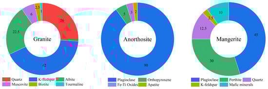 Mineralogical composition (%) of granitic and mafic rocks.
