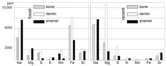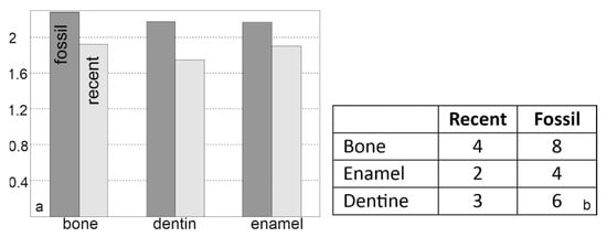 - Dauphin, Y.; Williams, C.T. Diagenetic trends of dental tissues. Comptes Rendus Palevol 2004, 3, 583–590. [Google Scholar] [CrossRef]