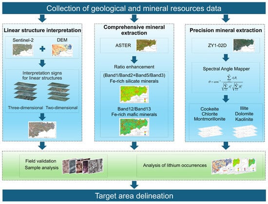 - Ding, W.; Ding, L.; Li, Q.; Li, J.; Zhang, L. Lithium-Rich Pegmatite Detection Integrating High-Resolution and Hyperspectral Satellite Data in Zhawulong Area, Western Sichuan, China. Remote Sens. 2023, 15, 3969. [Google Scholar] [CrossRef]