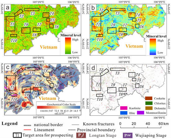 - Zhang, G.; Zhao, Z.; Zhang, X.; Wu, X.; Zheng, Y.; Feng, L.; Huang, Z. Comprehensive Multi-Source Remote Sensing Data Integration for Enhanced Mineralization Alteration Extraction and Geological Structure Interpretation in the Lala Region of Sichuan Province. Ore Geol. Rev. 2024, 168, 106032. [Google Scholar] [CrossRef]